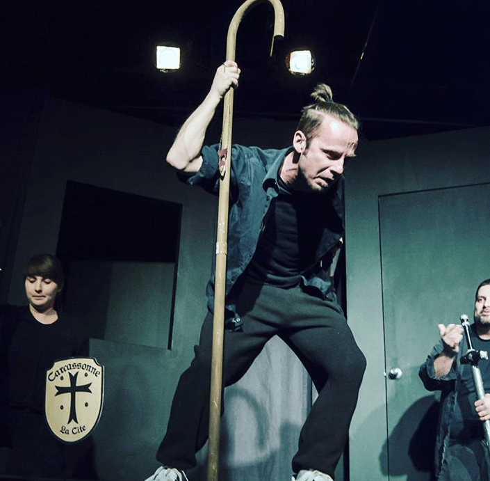 Visuellement, sur scène, nous n’utilisons que quelques costumes et accessoires suggérant un lieu donné, sans plus. Évidemment, il nous faut des éclairages et une scène assez grosse pour se déplacer, faire des entrées/sorties, etc. Rien de bien compliqué.